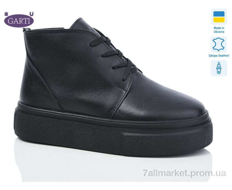 Ботинки женские стильные Весна/осень 0194 чорна шкіра байка (6 пар р.36-40) "Garti" недорого оптом от прямого поставщика