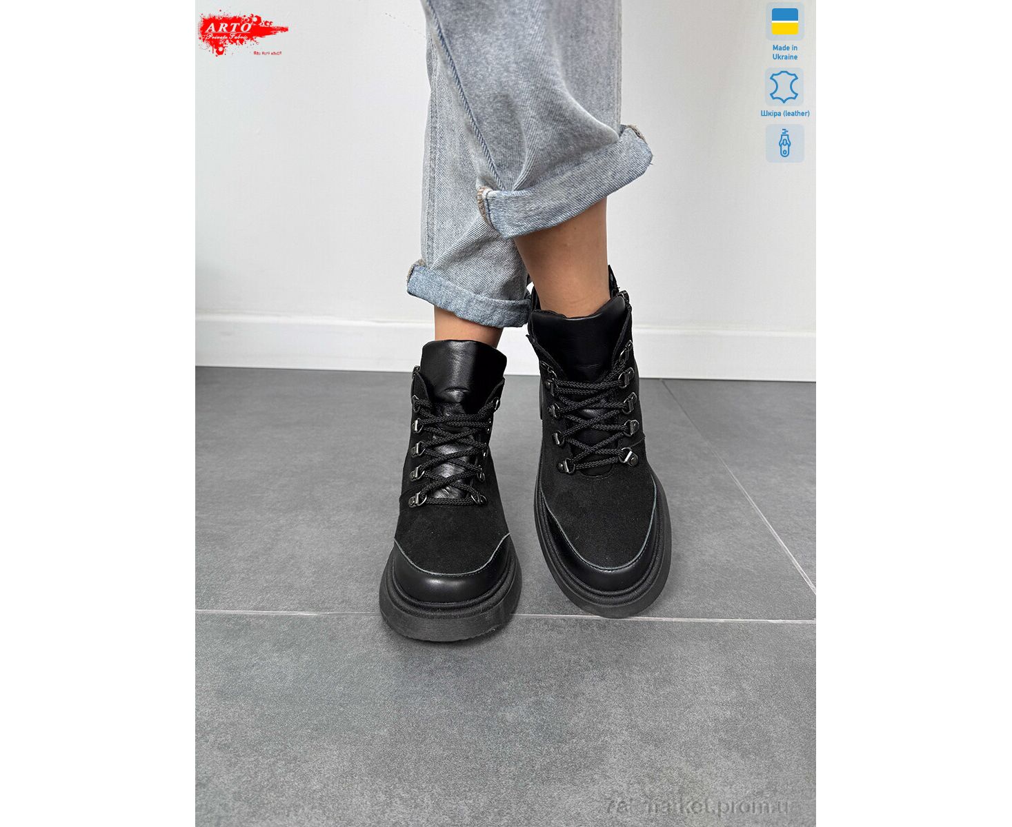 Ботинки женские стильные Весна/осень 075 ч.з. (6 пар р.36-40) "ARTO" недорого оптом от прямого поставщика