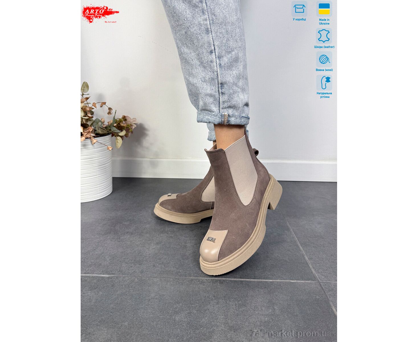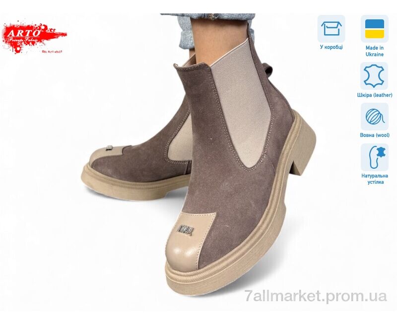 Ботинки женские стильные зима 105 кофе з. хутро (8 пар р.36-41) "ARTO" недорого оптом от прямого поставщика
