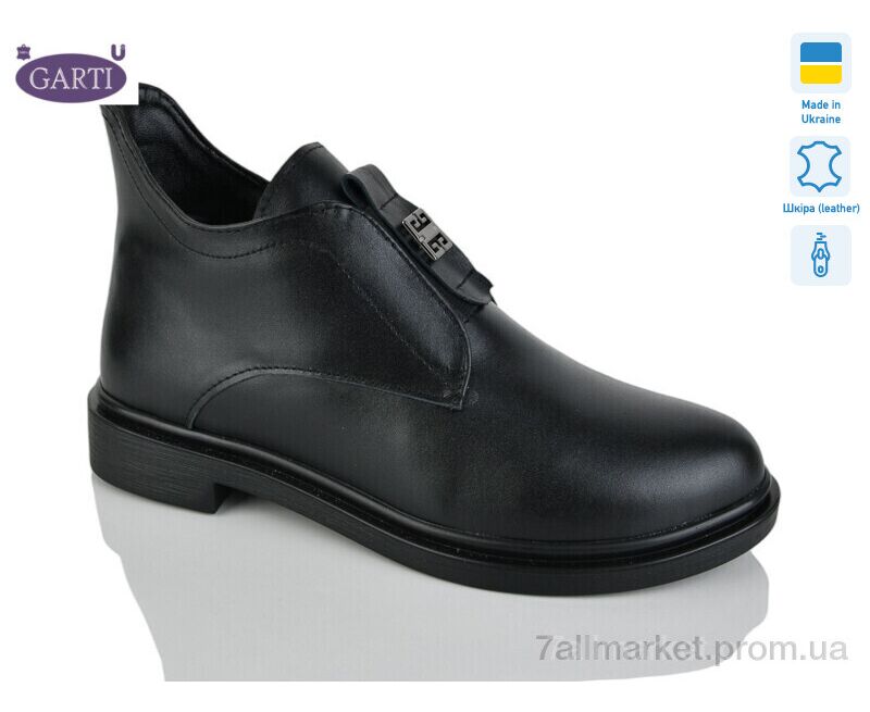 Ботинки женские стильные Лето 281 чорна шкіра (6 пар р.36-40) "Garti" недорого оптом от прямого поставщика