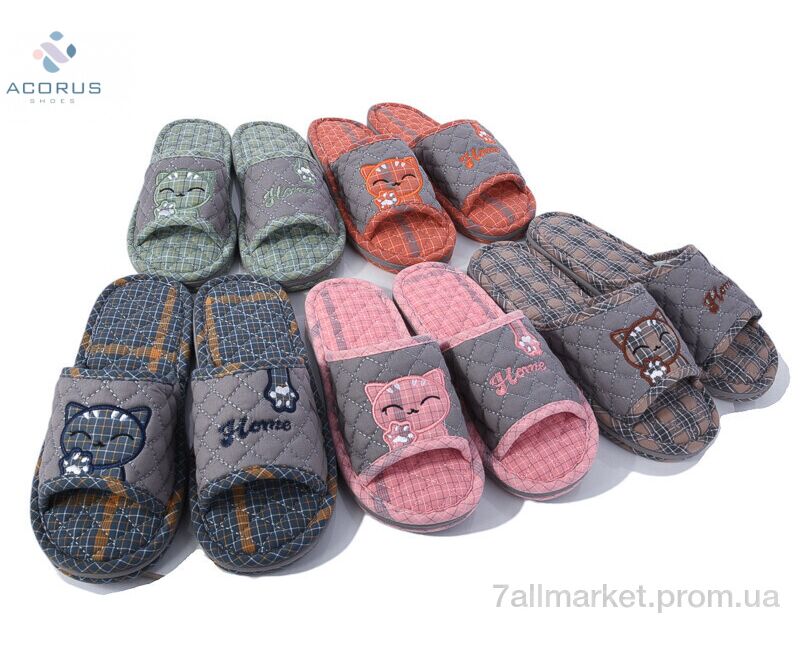 Тапки женские для дома Весна/осень A110 mix (10 пар р.38-44) "Acorus" недорого оптом от прямого поставщика