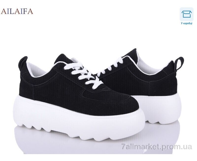 Кроссовки женские модные Весна/осень 6035 black-white (6 пар р.36-41) "Ailaifa" недорого оптом от прямого поставщика