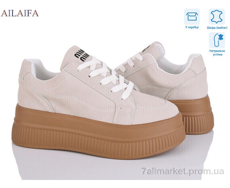 Кроссовки женские модные Весна/осень AW01 beige (8 пар р.36-41) "Ailaifa" недорого оптом от прямого поставщика