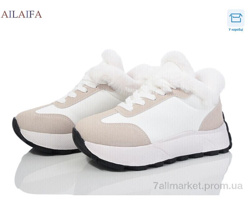 Кроссовки женские модные зима MD18 white (8 пар р.36-41) "Ailaifa" недорого оптом от прямого поставщика