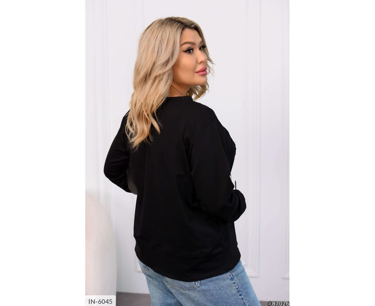 Кофта интересного кроя: посередине рабочая молния с канатом в цвет основания, на груди вставка с накатом, рукава на манжете.