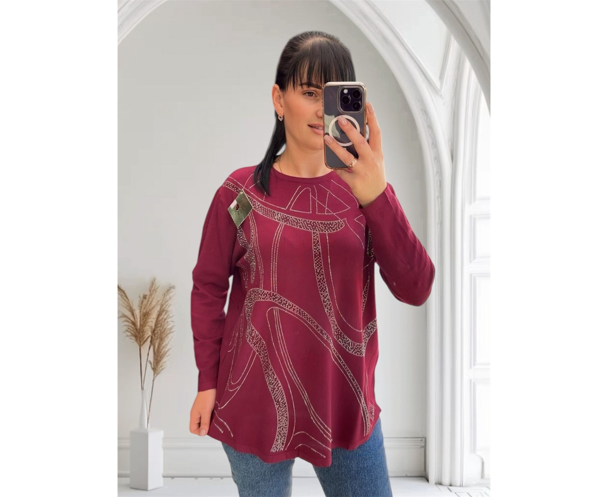 Свитер женский 25224 wine р.52-60 "PULSE" недорого оптом от прямого поставщика