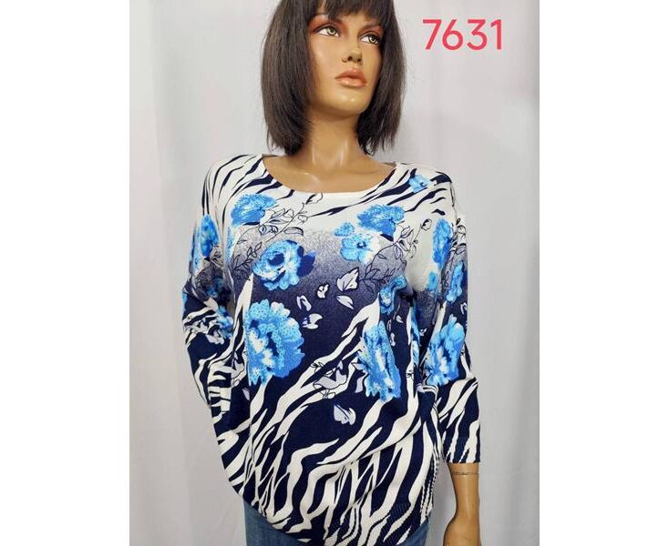 Свитер женский 7631 navy-l.blue р.3XL-4XL "LIDA" недорого оптом от прямого поставщика