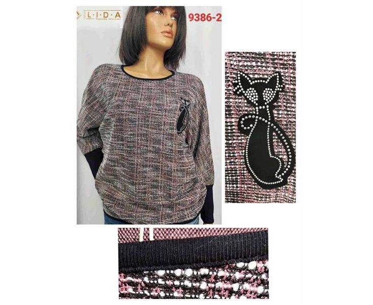 Свитер женский 9386-2 pink р.52-62 "LIDA" недорого оптом от прямого поставщика