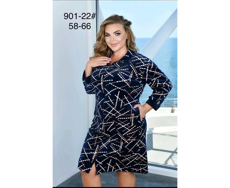 Халат женский 901-22 navy р.58-66 "HOME STYLE" недорого оптом от прямого поставщика