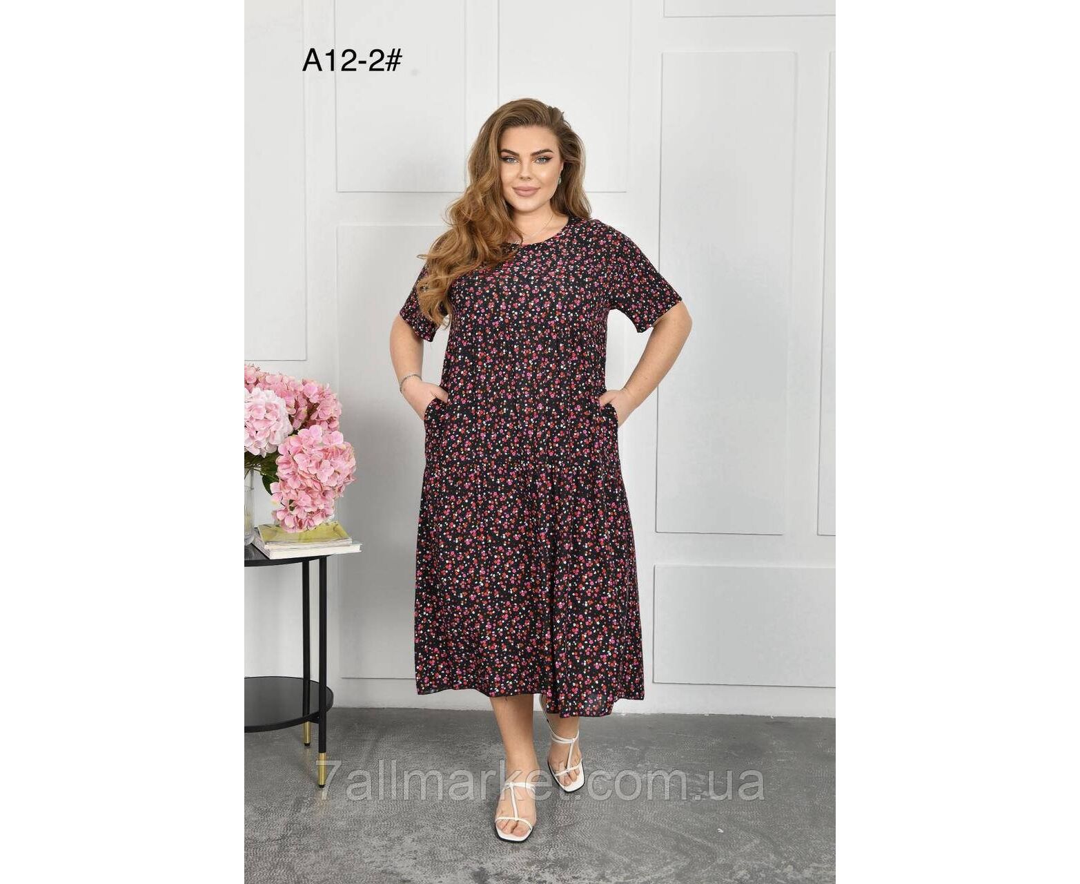 Платье женское домашнее р-ры 2XL-4XL (2цв) "FLOWER" купить недорого от прямого поставщика