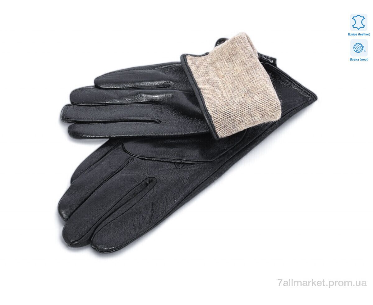 Перчатки женские Зима 3 black шкіра вовна (10 шт. р.сетка 6,5-8,5) "KUINH" недорого оптом от прямого поставщика