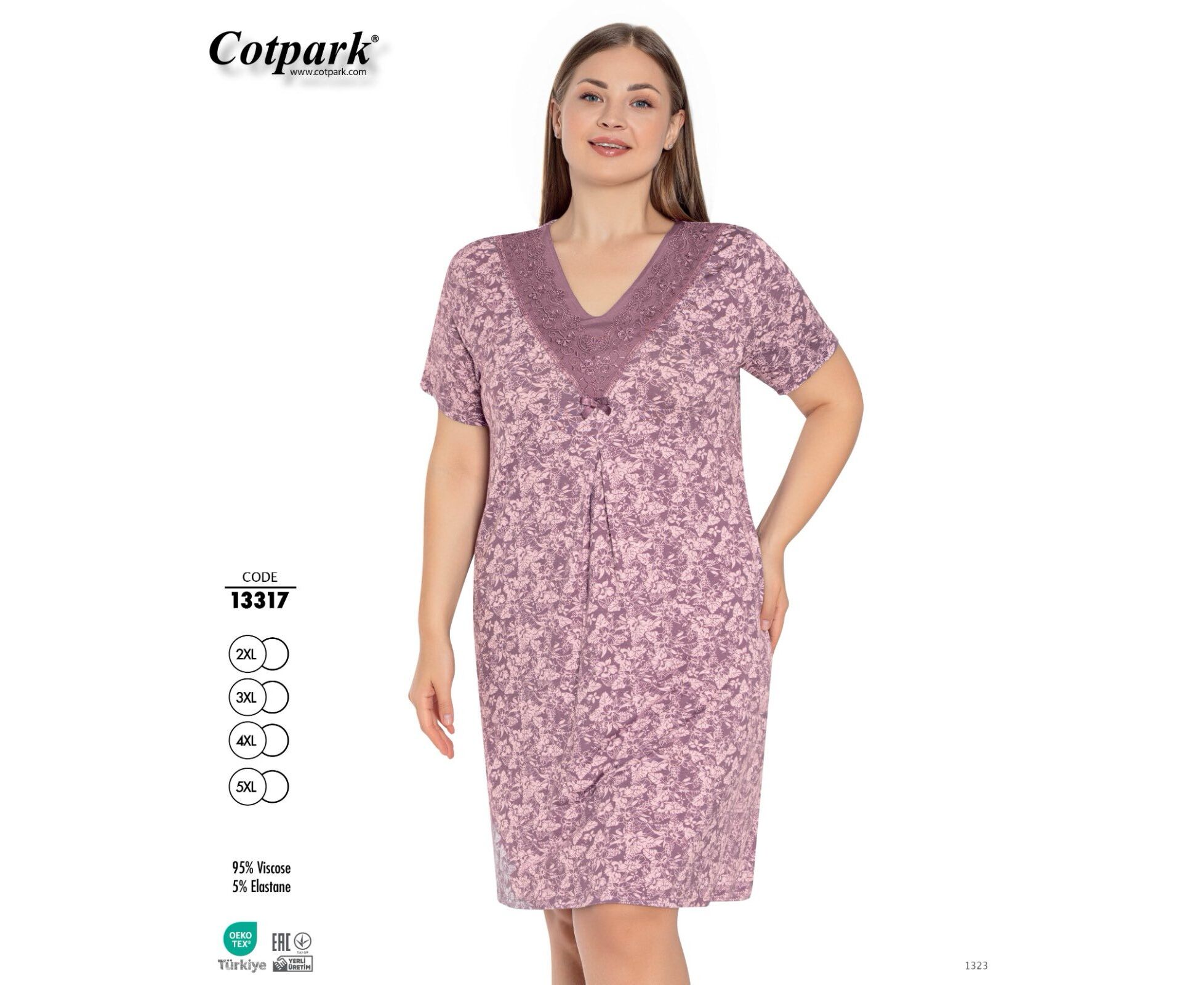 Ночнушка женская DS499-13317 powder р.2XL-5XL "DONELLA" недорого оптом от прямого поставщика