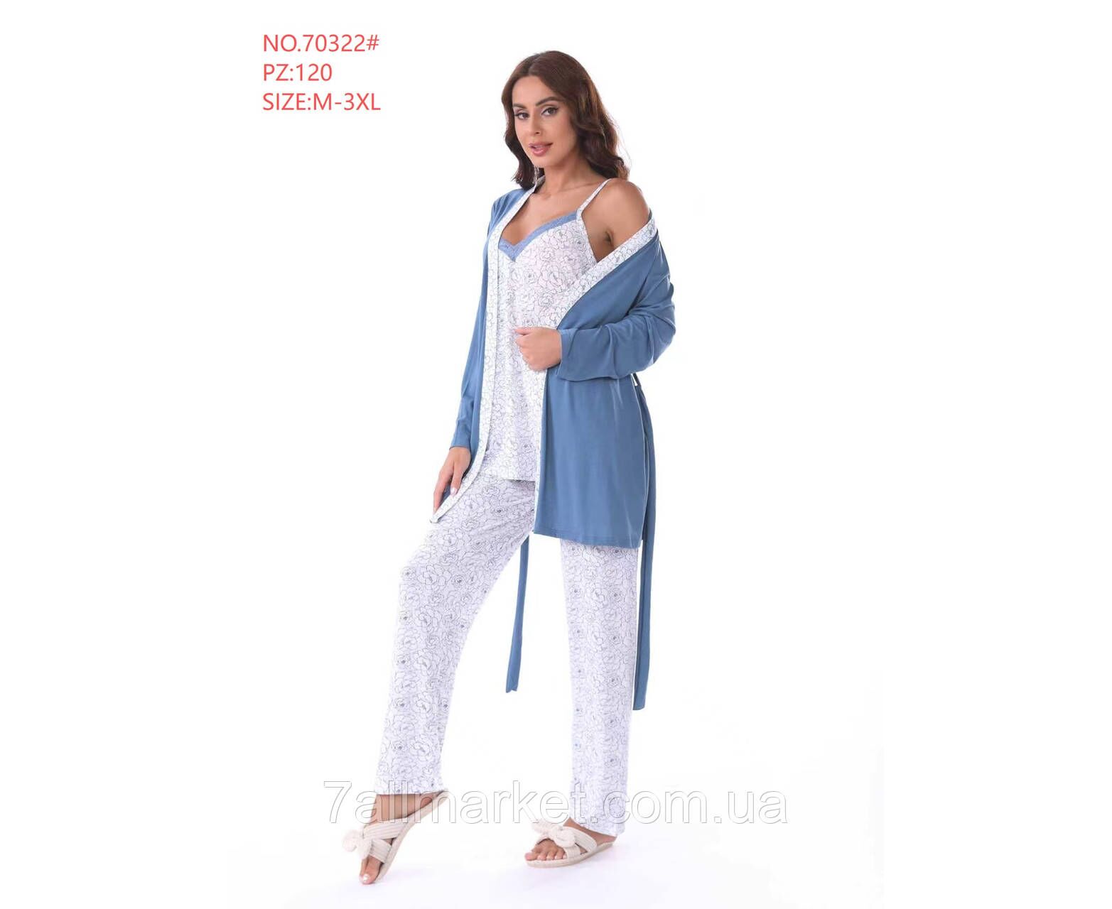 Пижама 3-ка женская с халатом трикотаж р-ры M-3XL "FLOWER" купить недорого от прямого поставщик