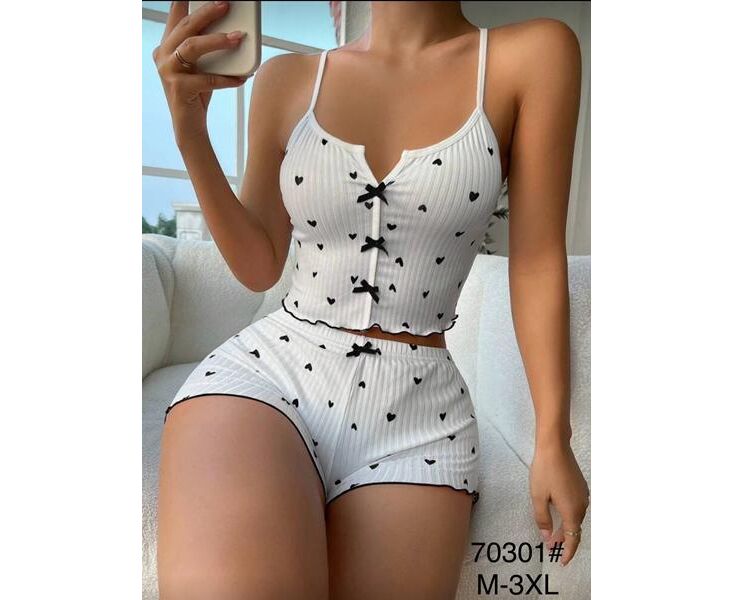 Пижама лёгкая женская 70301 white-black р.50-58 "Fili Wear" недорого оптом от прямого поставщика