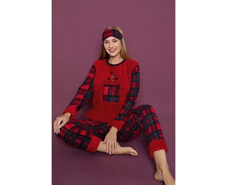 Пижама тёплая женская H122 red р.M-2XL "SHELLY" недорого оптом от прямого поставщика