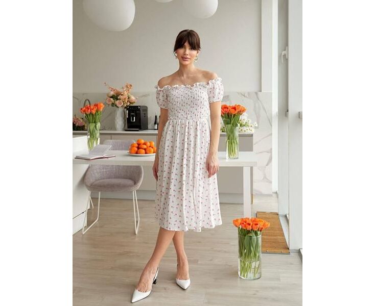 Платье летнее женское 1495 white-pink р.42-48 "BONJOUR" недорого оптом от прямого поставщика