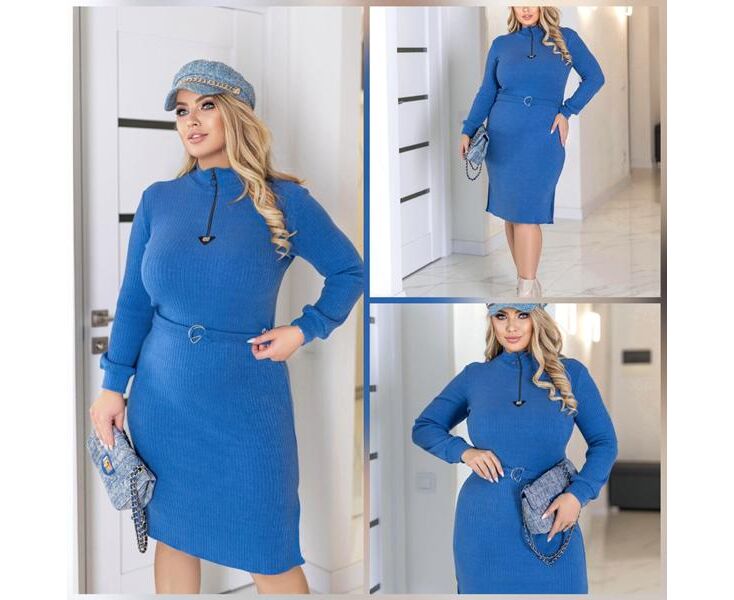 Платье тёплое женское 879 blue р.48-52 "Potok" недорого оптом от прямого поставщика