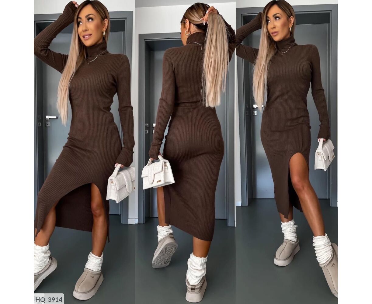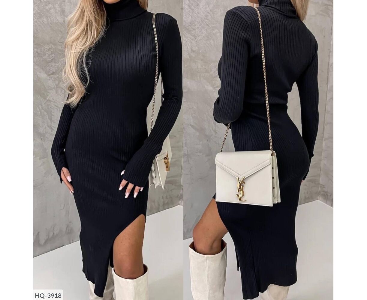 Приталенное платье с вырезом с одной стороны, высокая горловина, длинный рукав
