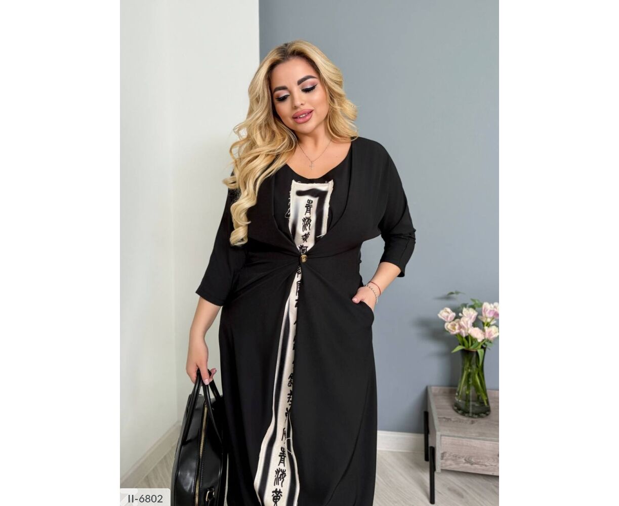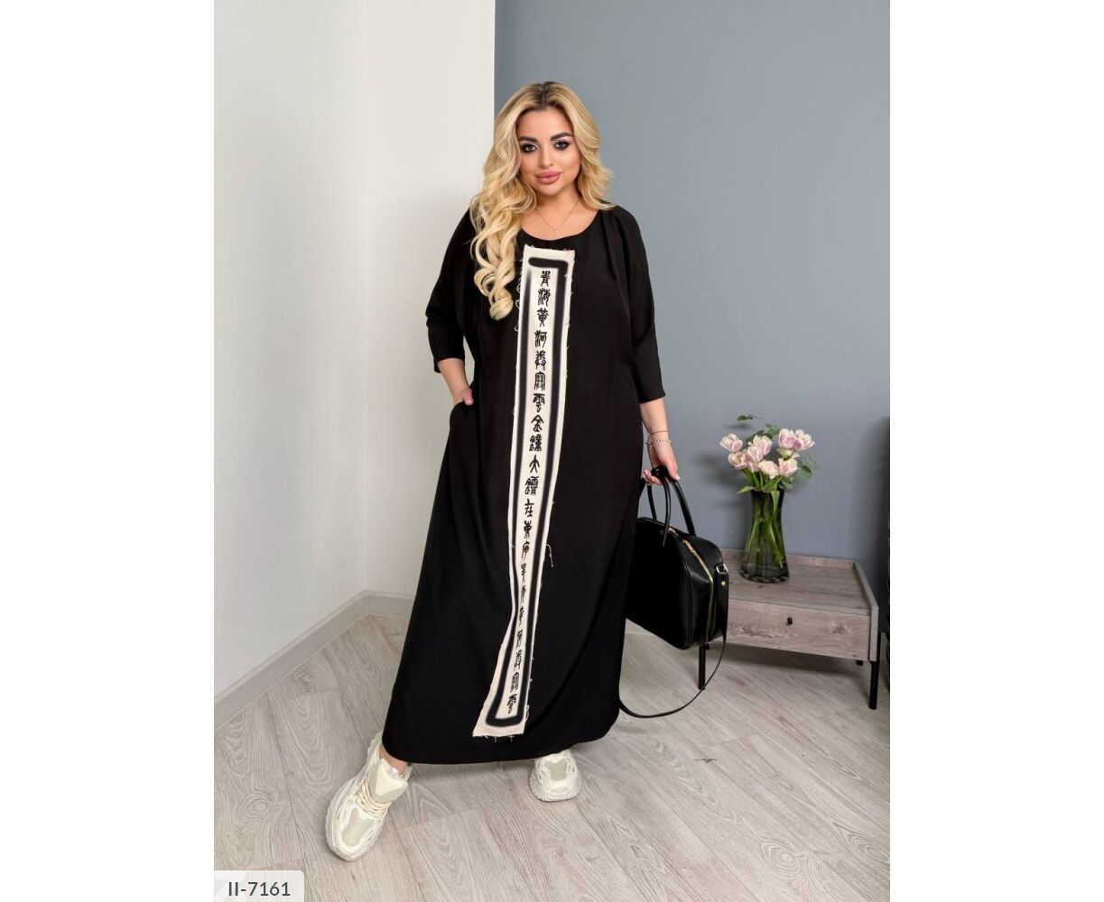 По бокам разрезы, платье сзади длиннее на 2-3см, по бокам карманы, рукав ниже локтя (длина 3/4)