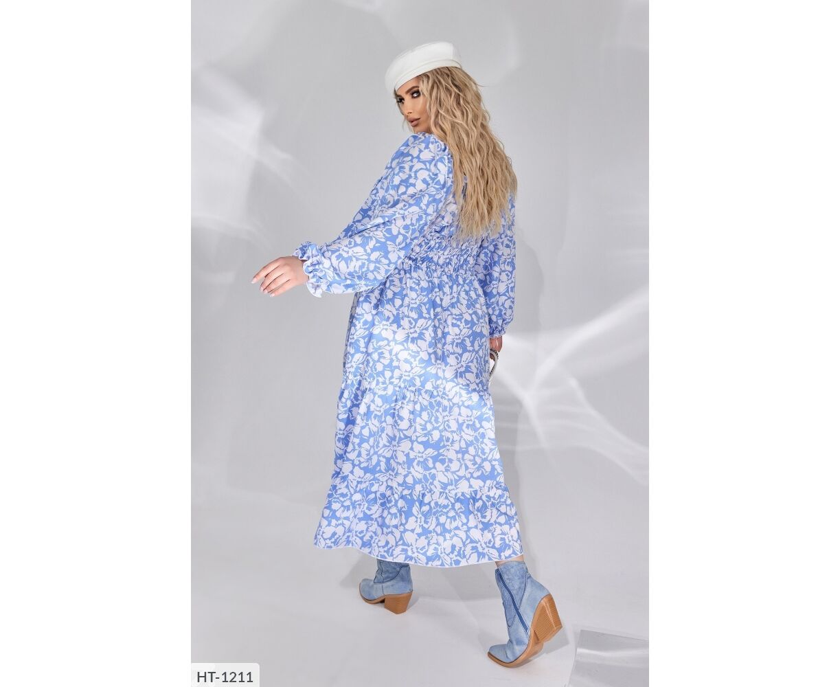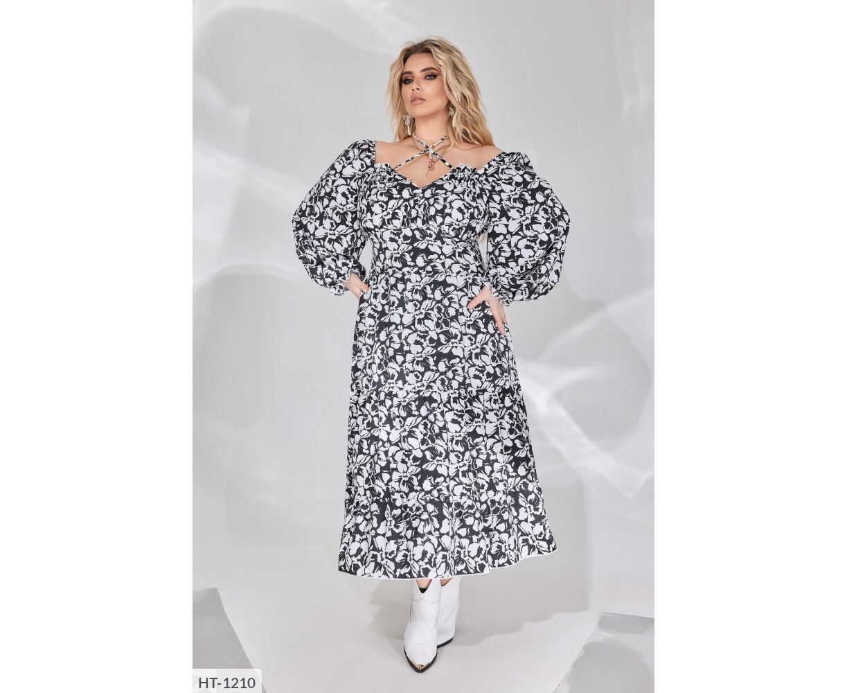 50-52 - ОГ 118/132, обт- 108, обхват бедер-136, длина рукава от плеча- 65, обхват рукавам -60, длина платья-113 см.