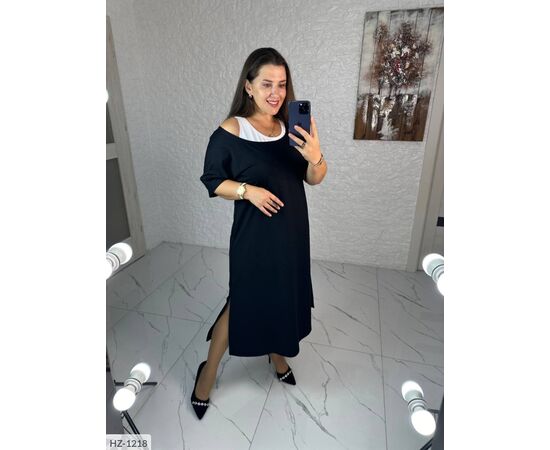 Костюм двойка: длинное платье из двухнитки с разрезами с обеих сторон, горловина расширена для того, чтобы можно было ее приспустить как на фото