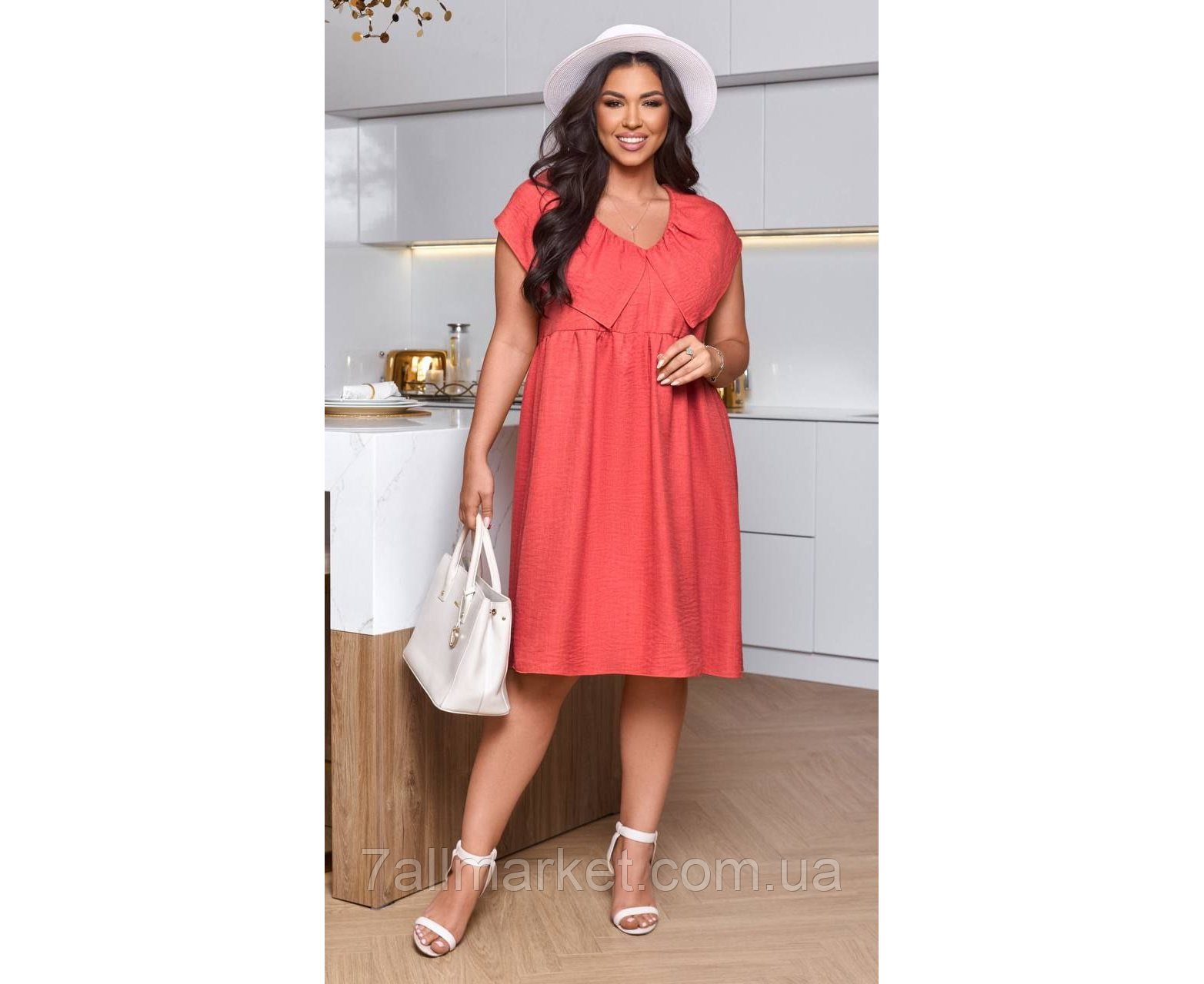 Платье Модель №034 КАЧЕСТВО ОТЛИЧНОЕ Размер: 46-48; 50-52; 54-56; 58-60 Ткань: лен жатка (не тянется) Длина платья: 105 см Яркое платье с отрезной талией, с V-образным вырезом