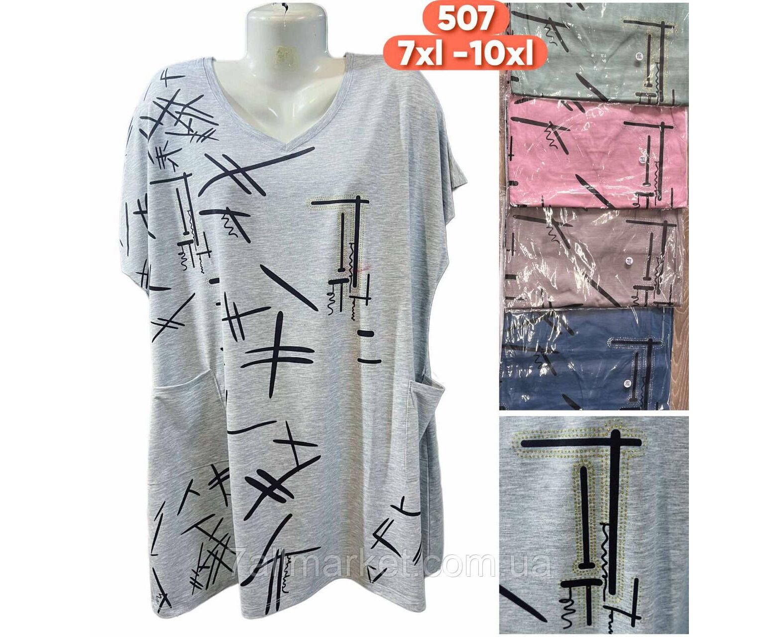 Туника женская летняя/супер-батал размеры 7XL-10XL (цв.микс) "STELLA" недорого от прямого поставщика