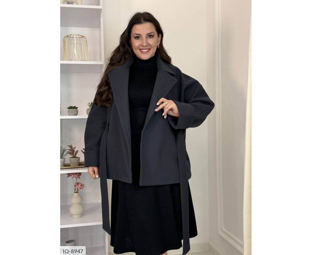 Шикарное пальто свободного кроя, хорошо сидит на любой тип фигуры, подчеркивает талию. Рукава можно красиво подкатать, в комплекте пояс, по бокам карманы.