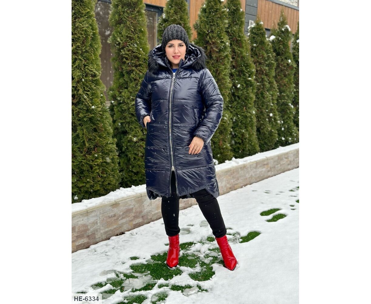 Теплое, удлиненное, стеганое пальто на синтепоне с фигурным низом, как на фото, глубокий капюшон со съемный искусственным воротником, теплое пальто застегивается на широкую тракторную застежку на два бегунки, по бокам два удобных кармана, рукава на резинке. На параметры 100-80-100 подойдет 46-48, на параметры 108-86-110 подойдет 50-52. Ориентируйтесь по размерной таблице при выборе нужного размера.