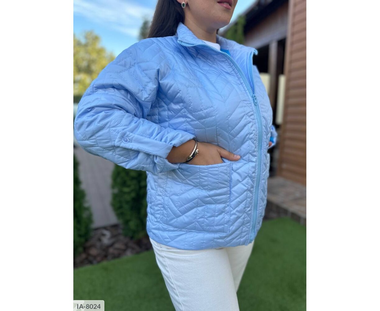 Курточка на молнии в цвет основы, по бокам два кармана, регулируется длина рукава (на патику с пуговицей), горловина стойка.