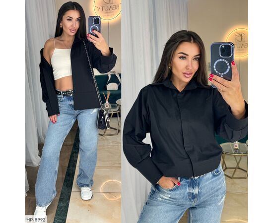 Рубашка свободного кроя, спереди пуговицы, прикрытые планкой, рукава на широком манжете, спереди вертикальная планка, широкий воротник, рукав реглан. Рубашка подойдет на параметры от ОГ 90, ОТ 65 до максимум ОГ 114, ОТ 92. Параметры модели -батал ОГ 108, ОТ 86, ОС 108, рост 165см