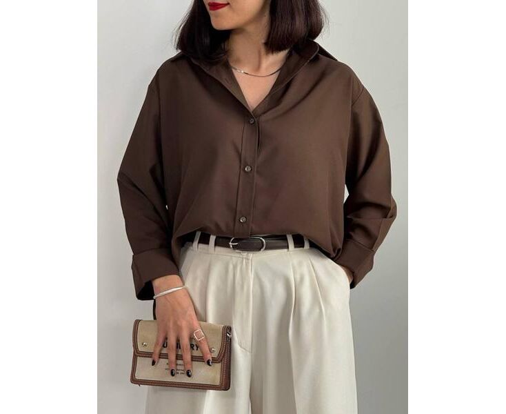 Блузка женская 1183 brown р.42-58 "FEMZONE" недорого оптом от прямого поставщика