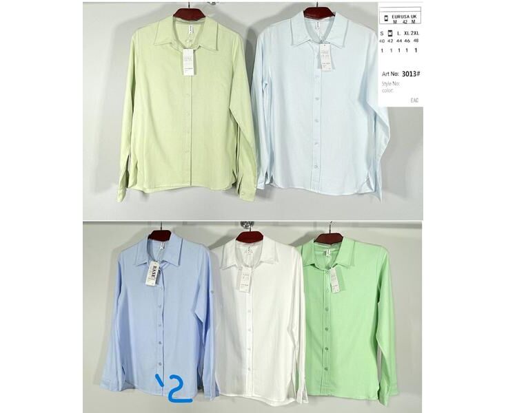 Рубашка женская A3013-2 l.blue р.44-52 "BASE" недорого оптом от прямого поставщика
