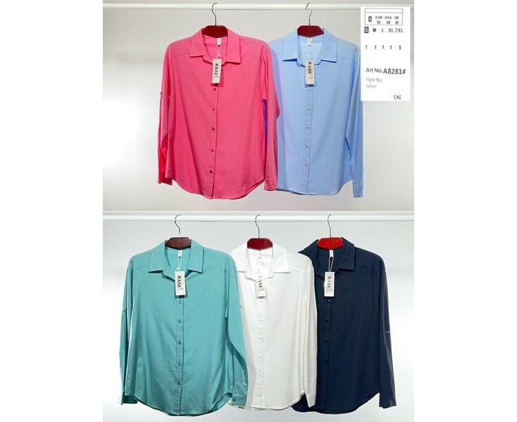 Рубашка женская A8281 l.blue р.44-52 "BASE" недорого оптом от прямого поставщика