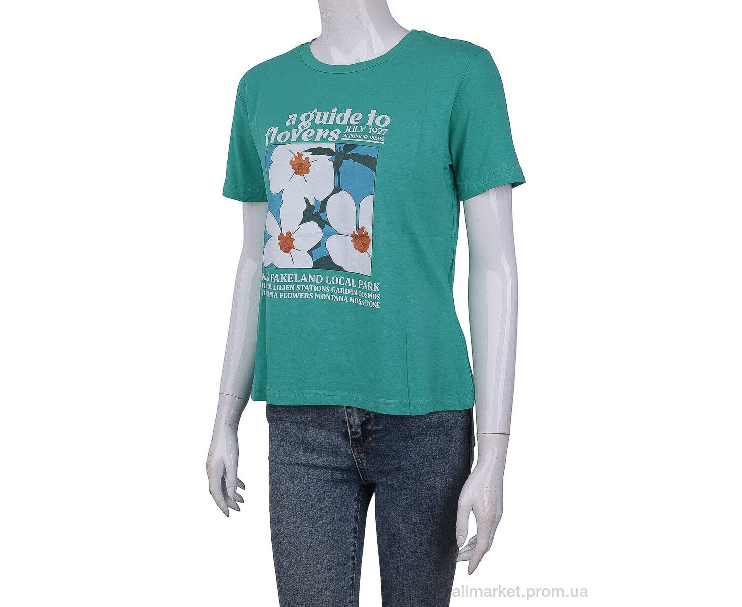Футболка женская Лето 3488-25 green (4 шт. р.сетка One size) "Мир" недорого оптом от прямого поставщика