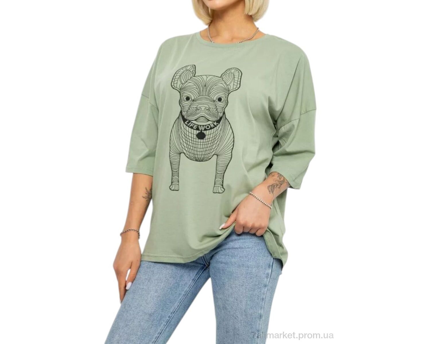 Футболка женская Лето 3005 св.олива (4 шт. р.сетка 4XL-5XL) "Massmag" недорого оптом от прямого поставщика