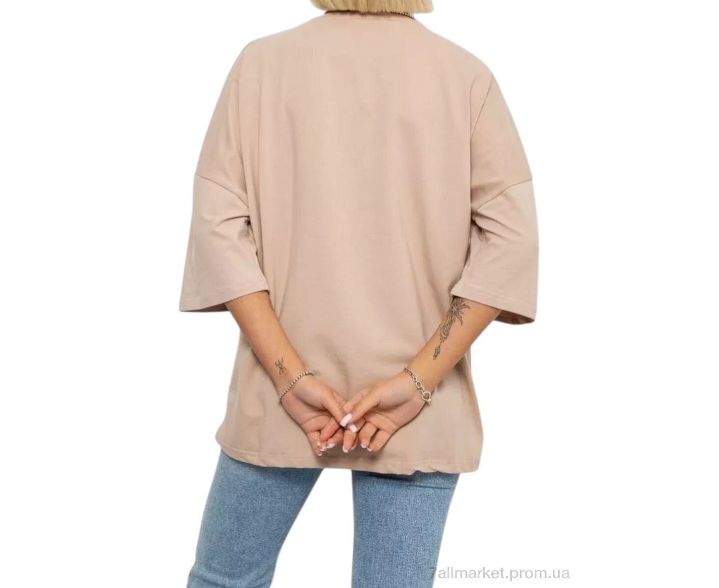 Футболка женская Лето 3008 бежевий (4 шт. р.сетка 4XL-5XL) "Massmag" недорого оптом от прямого поставщика