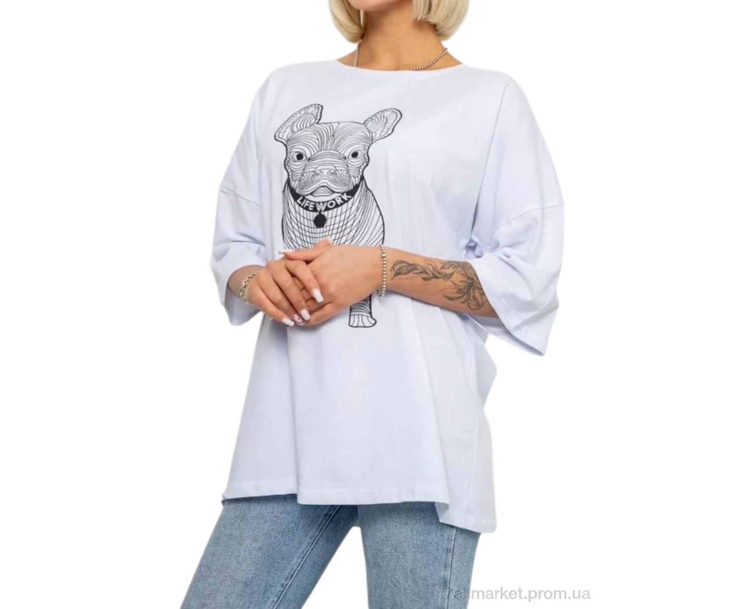Футболка женская Лето 3008 білий (4 шт. р.сетка 4XL-5XL) "Massmag" недорого оптом от прямого поставщика