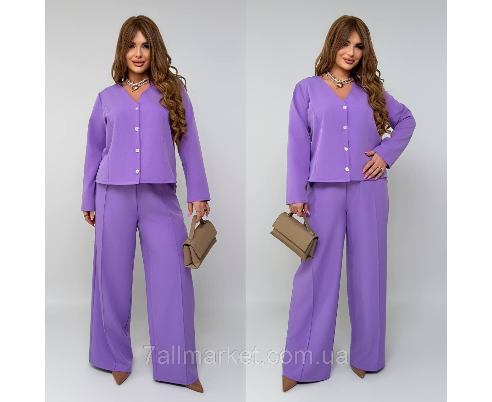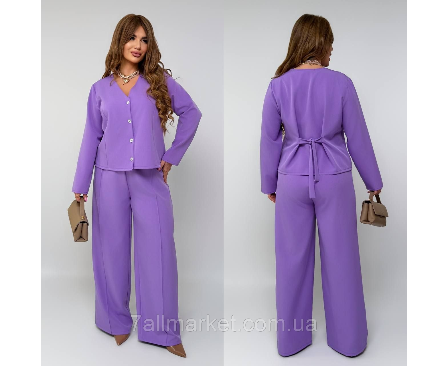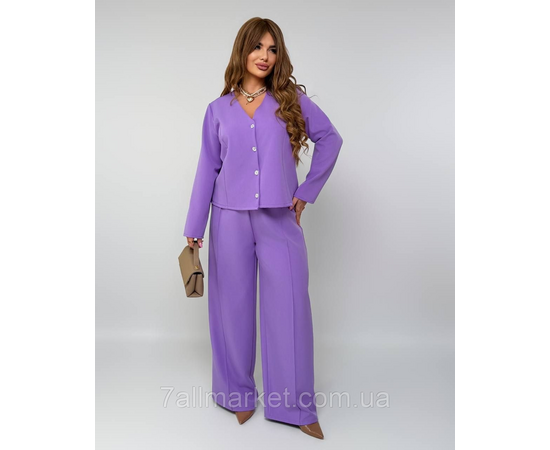 Костюм двойка Модель №7945-1  КАЧЕСТВО ОТМЕНЕНИЯ Размер : 46-48; 50-52; 54-56; 58-60 Тканина : креп - костюмка   Длина пиджака   : 64 см.. Длина рукава: 62 см.  Длина брюк   : 112 см.  ✔️Пиджак : 46-48 ог 110 ос 112 50-52 ог116 ос 120 54-56 ог 122 ос 128 58-60 ог 128 ос 136 ✔️Штаны :  46-48 ос 110 50-52 ос 116 54-56 ос 122  58-60 ос 128  Штани   с высокой посадкой, пояс на резинке  , боковые карманы, с переда стрелки   . Пиджак на пуговицах из зади завязка