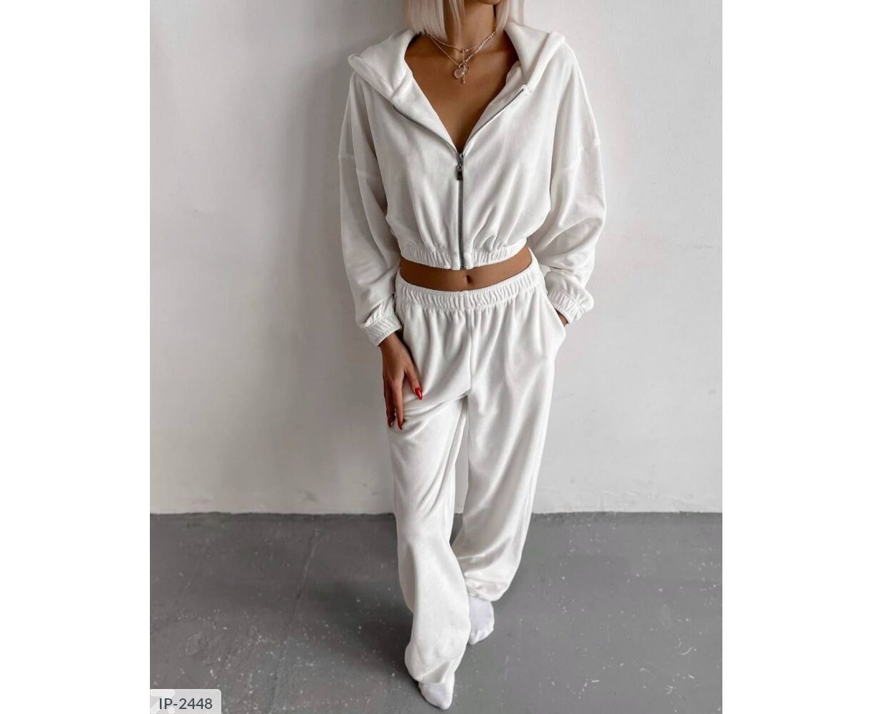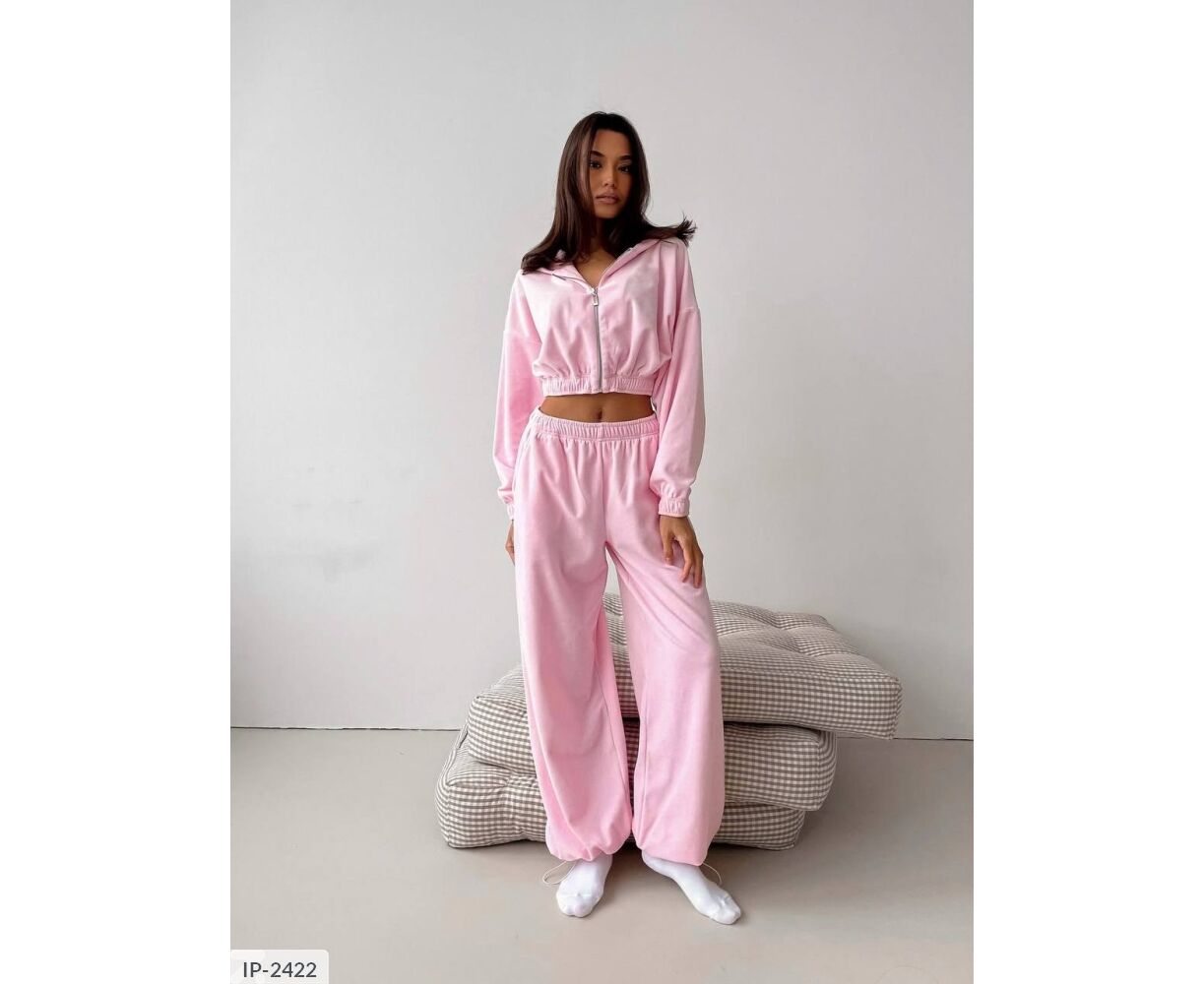 Удобная короткая кофта и широкие брюки (низ брюк на затяжках)