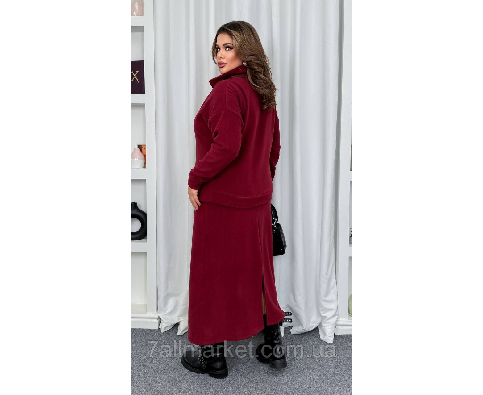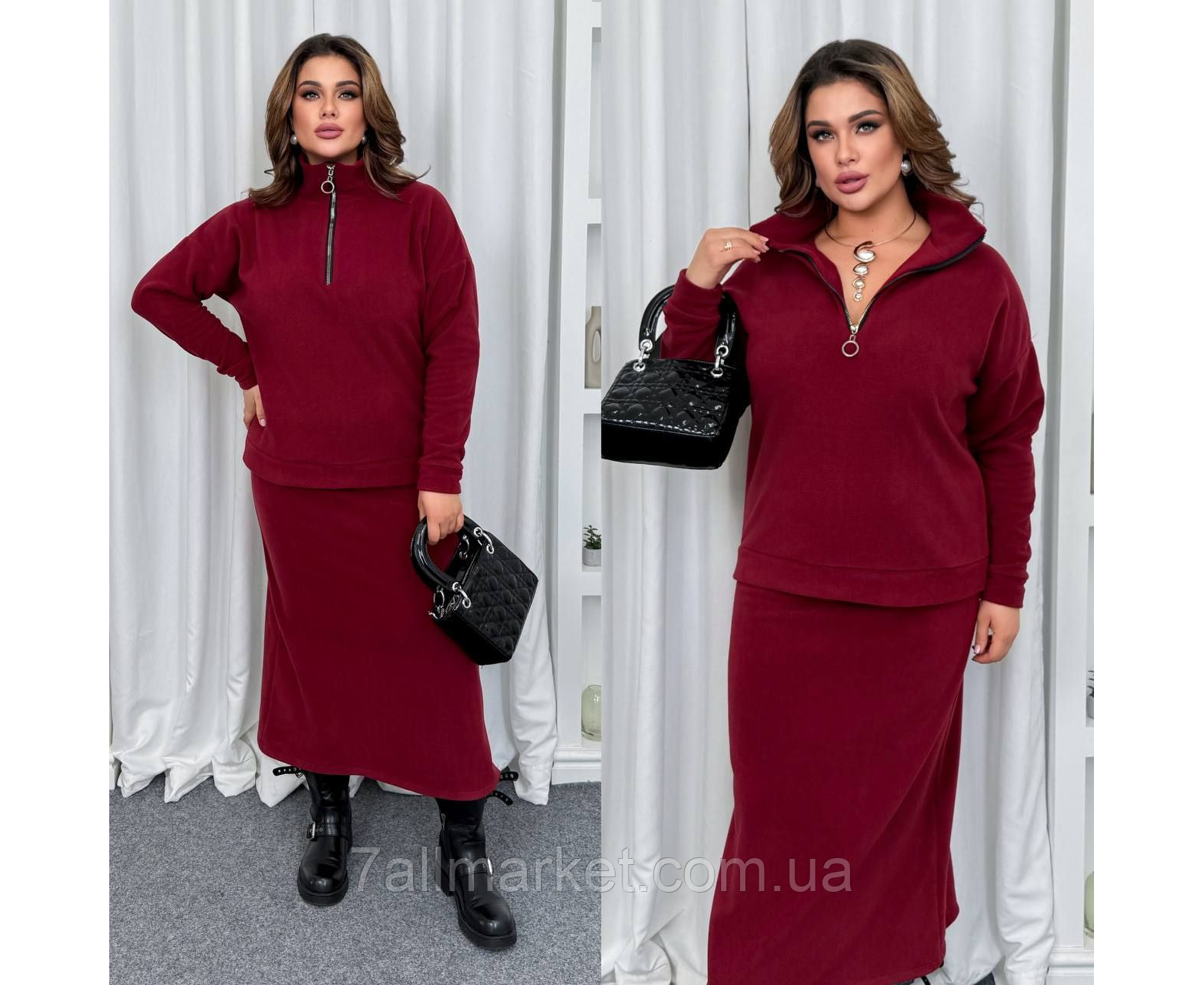 Костюм двойка Модель № 069 КАЧЕСТВО ОТМЕНЕНИЯ Размер : 46-48; 50-52; 54-56; 58-60 Ткань : дабл флис полар ( красиво тянется ) Длина кофты : 70 см . Длина рукава : 78 см. Длина юбки: 100 см. Теплый костюм - кофта + юбка. Кофта прямого покроя, воротник стойка на молнии . Юбка покроя трапеция, пояс на резинке , сзади разрез.