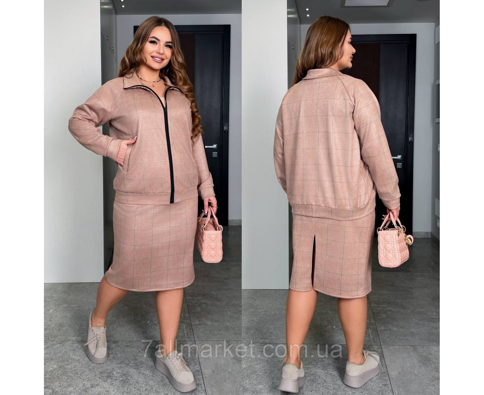 Костюм двойка Модель № 7926-1 КАЧЕСТВО ОТМЕНЕНИЯ Размер :46-48; 50-52; 54-56; 58-60 Ткань : замш на дайвинге ( красиво тянется ) Длина бомбера : 72 см.. Длина рукава: 74 см. Длина юбки:70 см Юбка прямого покроя с высокой посадкой, пояс на резинке , с разрезом. Бомбер прямого покроя , на молнии, с карманамиСтрана производитель: Украина