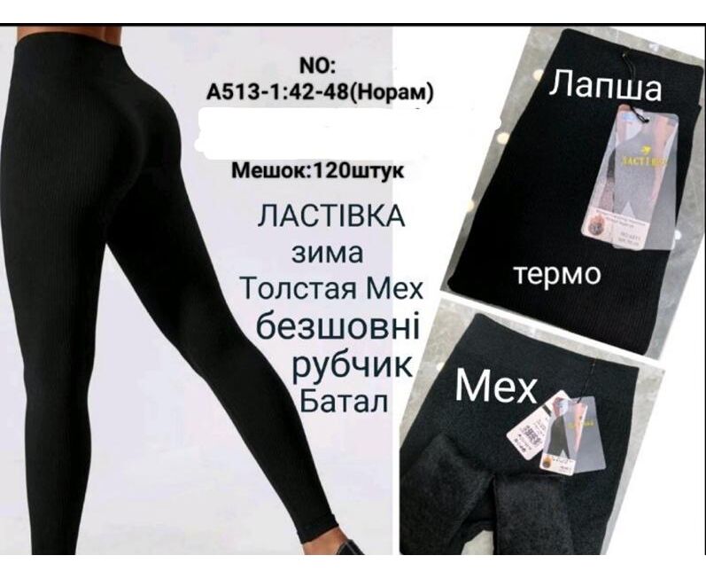 Лосины женские тёплые A513-1 black р.42-48 "Redoor" недорого оптом от прямого поставщика
