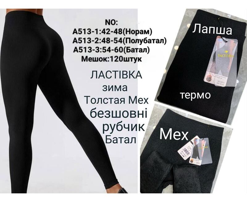 Лосины женские тёплые A513-1 black р.42-48 "WHITE" недорого оптом от прямого поставщика