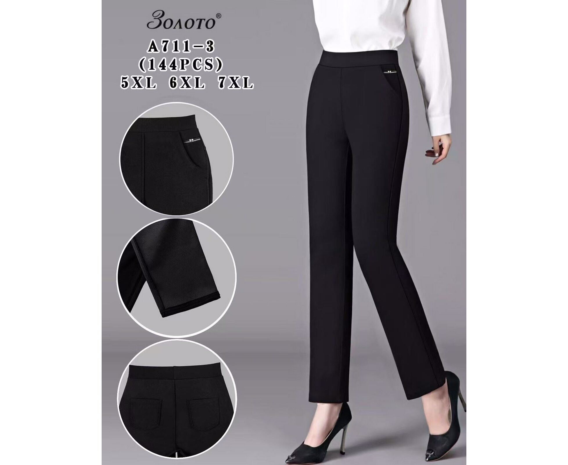 Штаны женские 711-3 black р.5XL-7XL "JEANS KIDS" недорого оптом от прямого поставщика