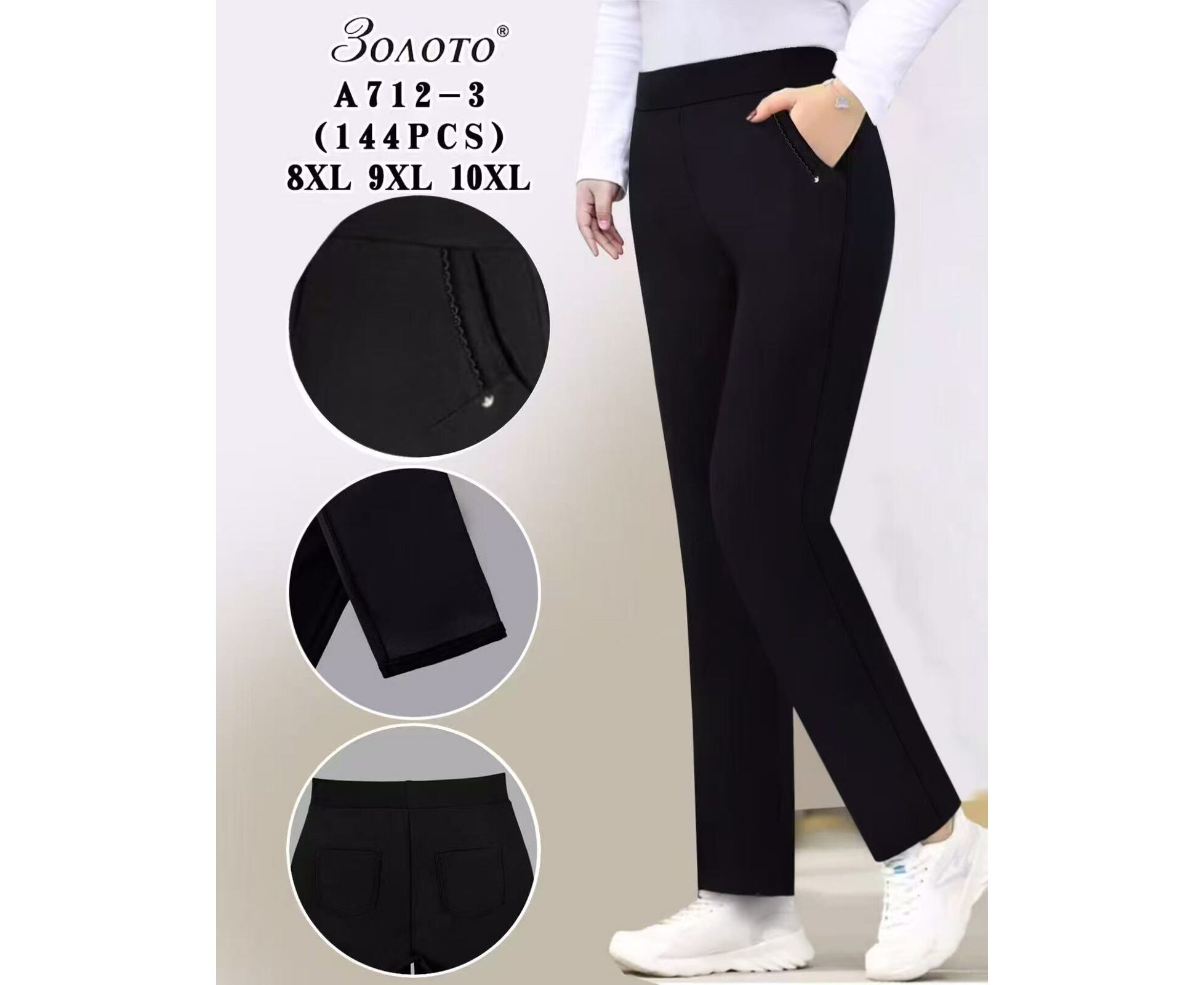 Штаны женские 712-3 black р.8XL-10XL "JEANS KIDS" недорого оптом от прямого поставщика