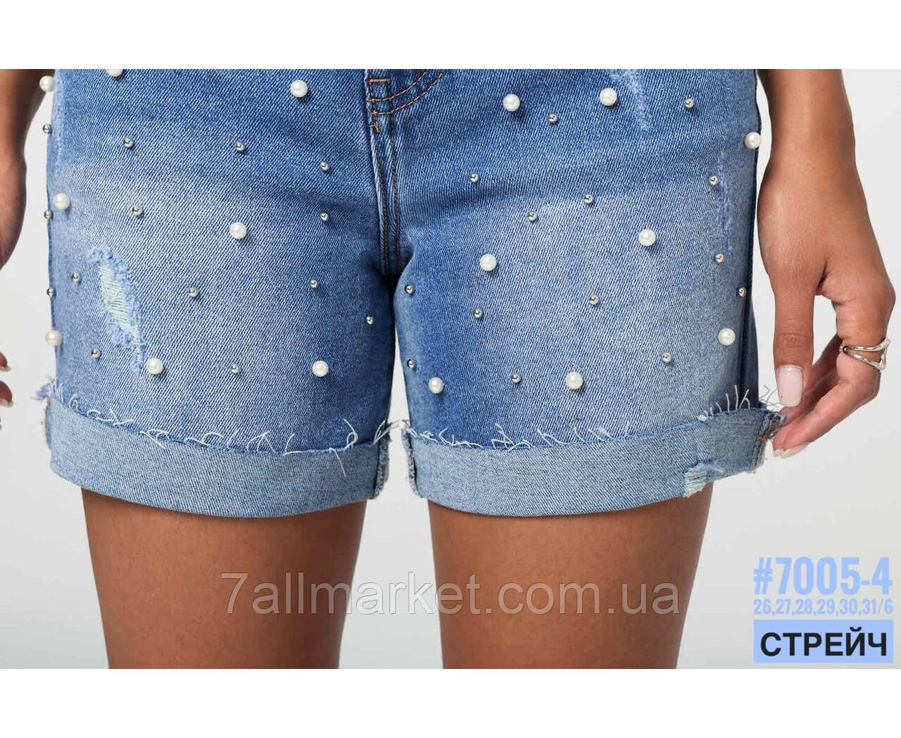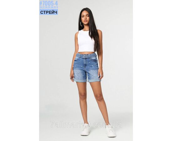 Шорты джинсовые с жемчугом и ремнем размерный ряд 26,27,28,29,30,31 "PARTNERS" недорого от прямого поставщика