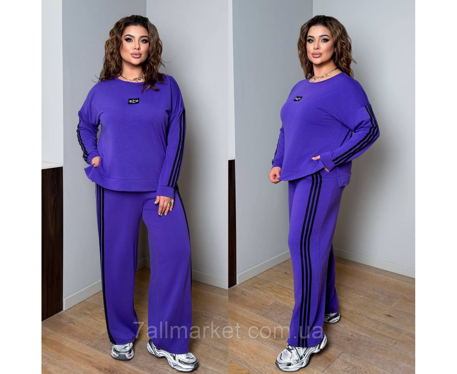 №8006-1 костюм :НОРМА!!️42-44; 46-48‼️ БАТАЛ!!️ 50-52; 54-56; 58-60‼️. Тканина костюма : двонитка ( хорошая растяжимость) Довжина кофти : 68 см. Длина рукава : 72 см. (от горловины ) Длина брюк : 106 см Кофта прямого покроя на манжете, рукав с ломпастом. Брюки с боковыми ломпасами, с высокой посадкой пояс на резинке, с боковыми карманами низ на фиксаторе.