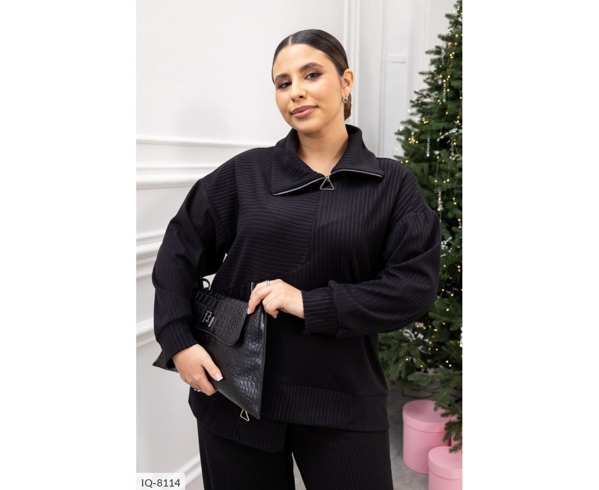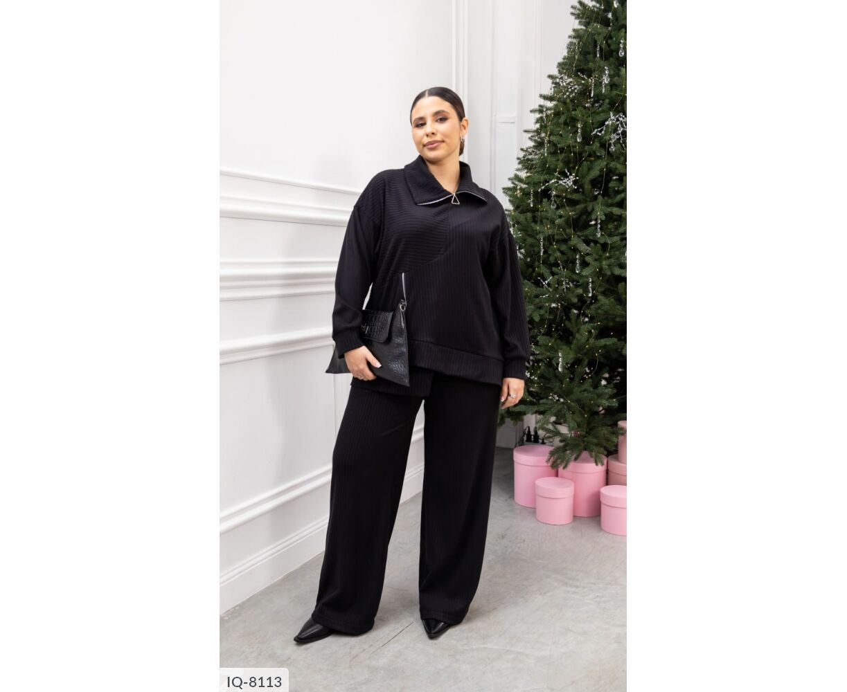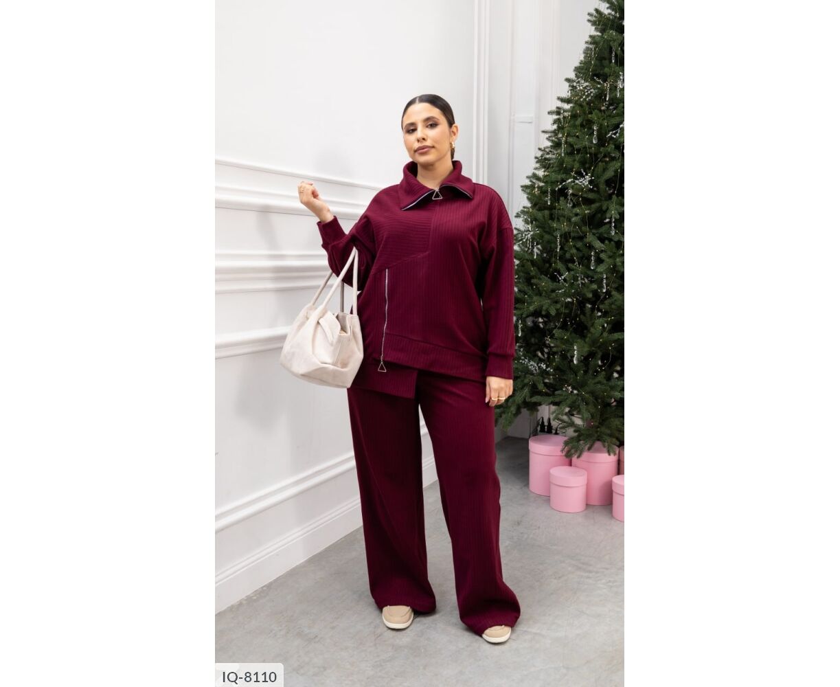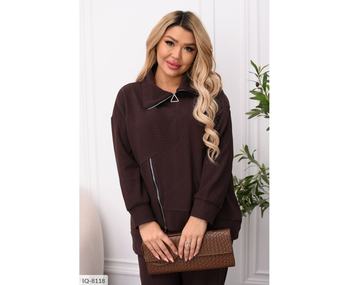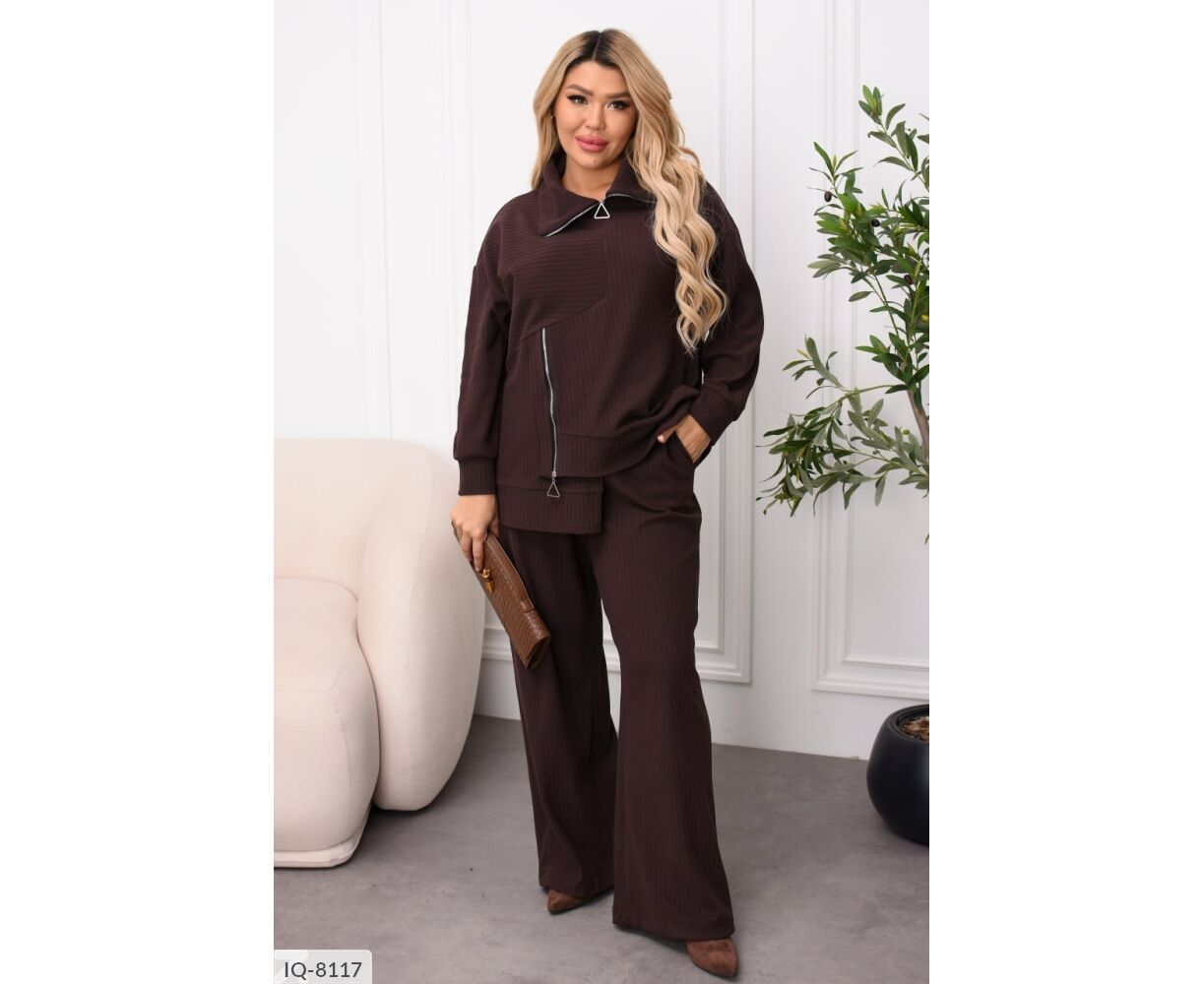 Комфортный костюм-двойка для повседневных образов. Кофта из трикотажа пума рубчик приятна к телу, эластична и аккуратно смотрится. Функциональные молнии на горловине и сбоку добавляют стильный акцент и удобство. Брюки средней посадки на эластичном поясе не стесняют движения, а боковые карманы в шве повышают практичность.