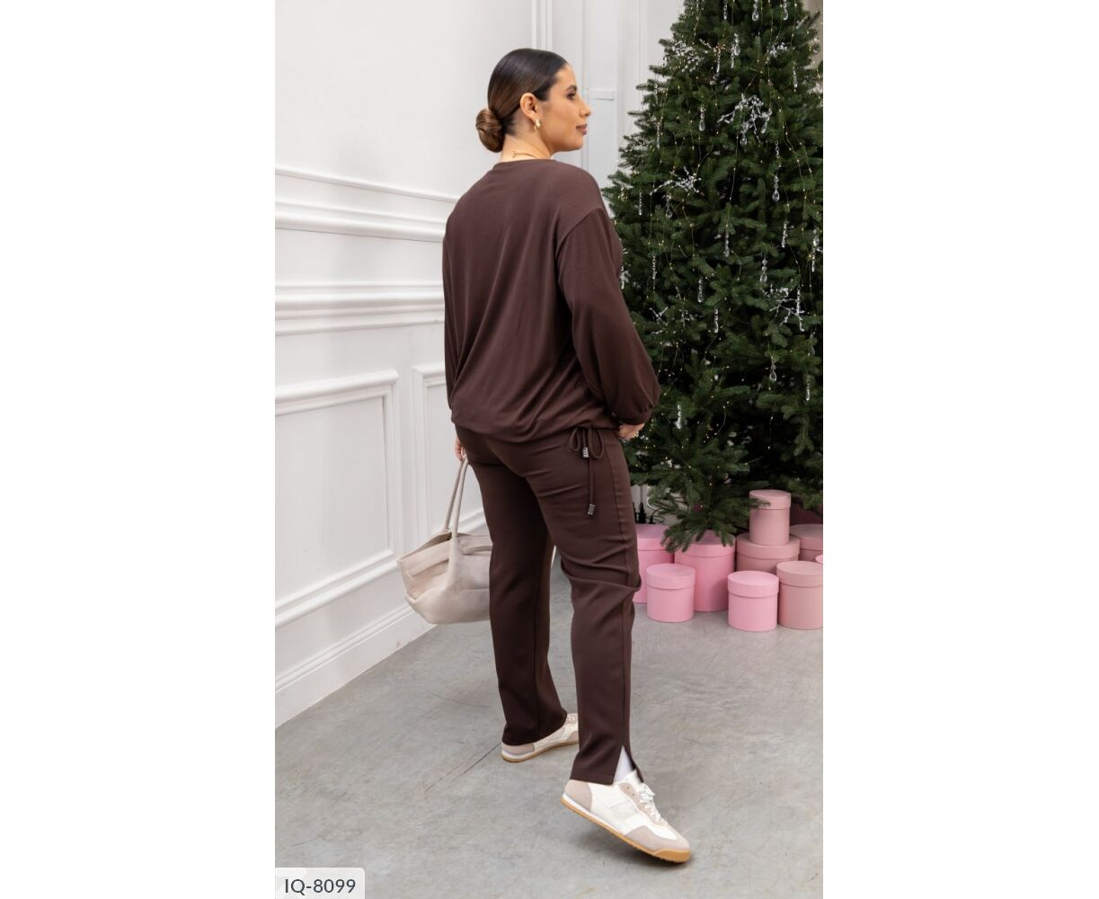 Изысканный костюм-двойка для ежедневных образов без компромиссов. Свободная кофта с кулиской по низу позволяет регулировать посадку подчеркнуть талию или носить свободнее. Брюки средней посадки с эластичной резинкой сзади на поясе дарят свободу движений и аккуратную посадку. Лаконичный силуэт легко сочетается с кроссовками, лоферами или ботинками.